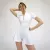This body-hugging playsuit is crafted with attention to detail, featuring a flattering mid-waist design and a stylish round neck. The short sleeves add a touch of chic, making it perfect for various occasions.