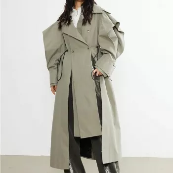 Women’s Double-Breasted Trench Coat with Irregular Hem