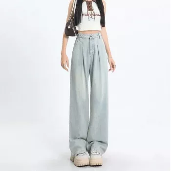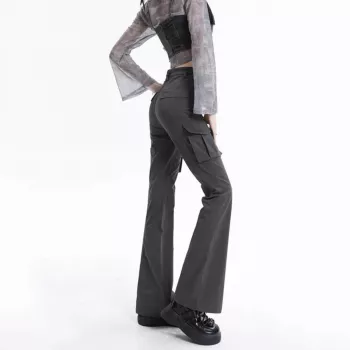 High-Waisted Baggy Jeans with Lace-Up Cargo Pockets