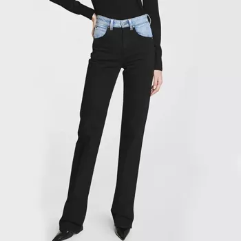 High Waist Casual Straight Denim Trousers with Hollow Out Detail