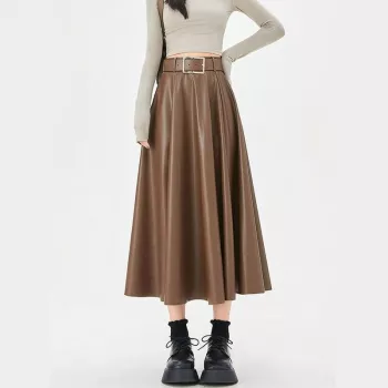 Elegant High-Waist Faux Leather Skirt with Belt