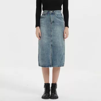 Classic High Waist Straight Denim Skirt