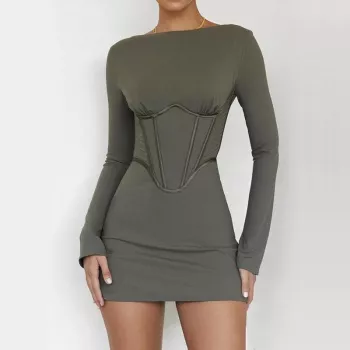 Backless Lace Mesh Mini Dress: Long Sleeve, Square Collar, Ruched Design for Evening Parties