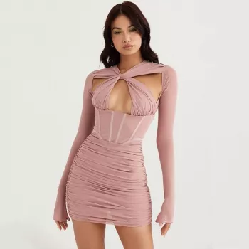 Town like Turtleneck Mesh Pleated Slim Bodycon Dress