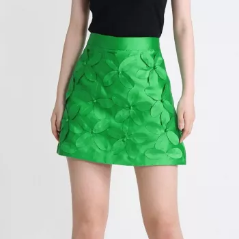 Chic High Waist Blue Denim Skirt with 3D Rose Detail