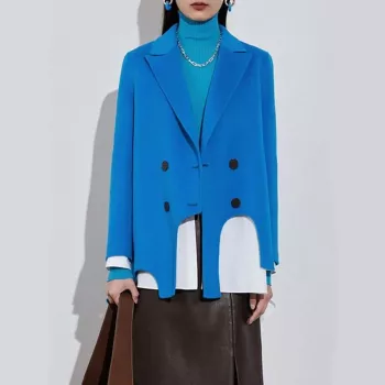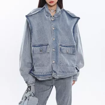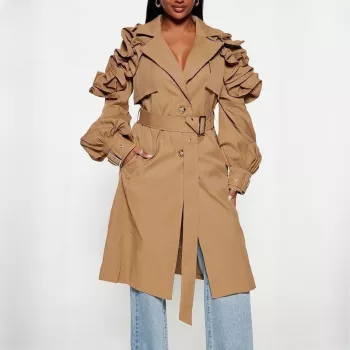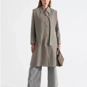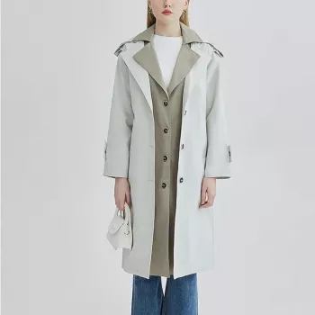 Gray Blue Bat Sleeve Trench Coat with Double Breasted Design