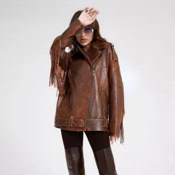 Stylish Oversized Faux Leather Jacket with Tassels for Women