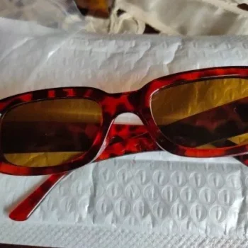 Took a chance on this trendy style and found these sunglasses to be a great value. Even received compliments from teenagers! These glasses were an ideal match for my costume! The color is spot-on, and they strike a great balance between being light and durable. While I wouldn't handle them recklessly, I wasn't worried about them breaking from an accidental drop. The lenses are tinted orange, adding to their appeal. Plus, the price is quite fair for both the item and its quality. Highly recommended!