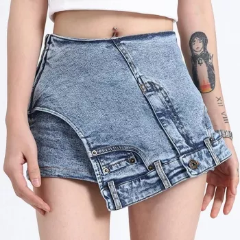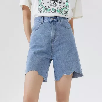 100% Cotton Solid Color A-Line Bermuda Denim Shorts