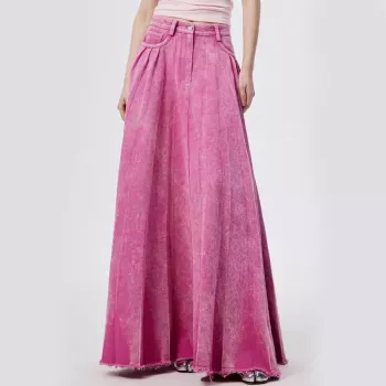 High Waist A-line Floor-Length Denim Skirt in Flash Rose Pink