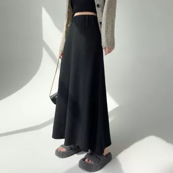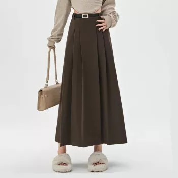 Winter Knee-Length A-Line Skirt with Embroidery & Pockets