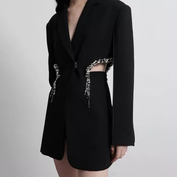 Elegant Hollow Out Crystal-Embellished Women’s Blazer
