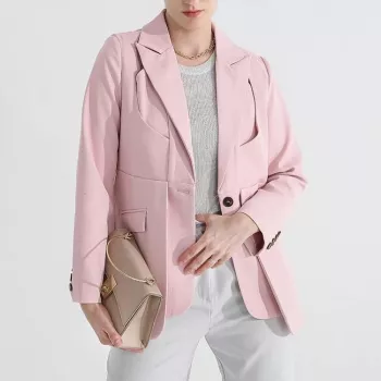 Women’s Solid Color Blazer with Notched Collar and Unique Folds