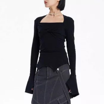 Chic Square Collar Flare Sleeve Knit Sweater for Women