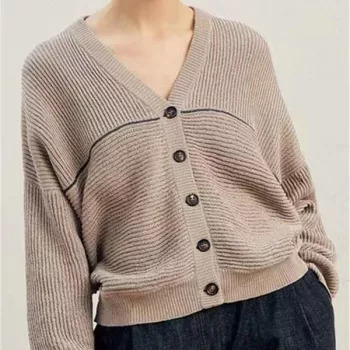 Stylish V-Neck Beaded Chain Women’s Cardigan Jacket