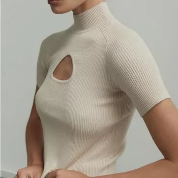 Women’s Half High Collar Short Sleeve Knitted Pullover