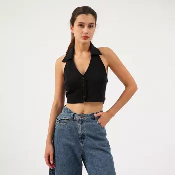 Chic Diagonal Shoulder Knit Tank Top with 3D Rose Detail